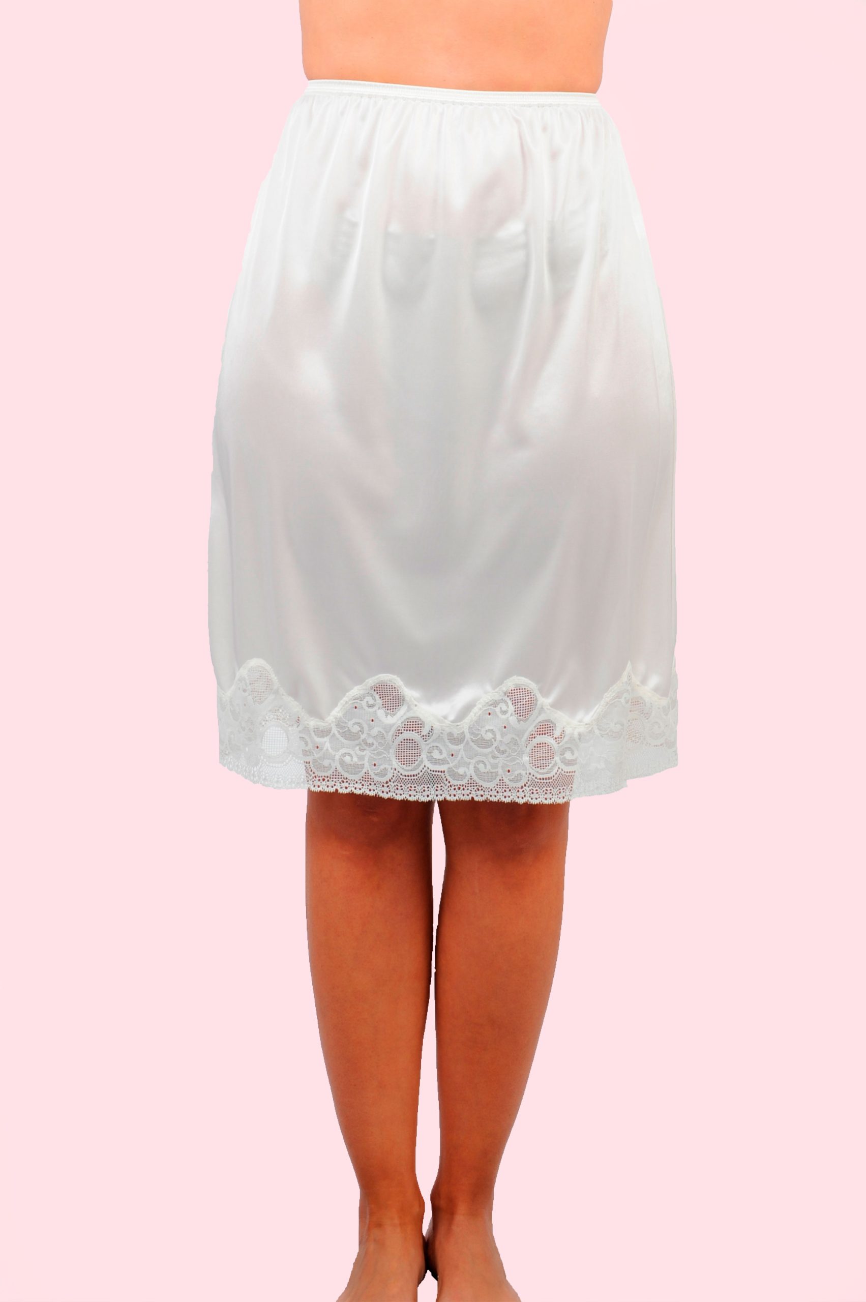 Medio fondo cerrado adornado con encaje fino al ruedo inferior