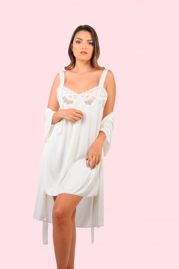 Juego de bata y camisón corta con cinturón