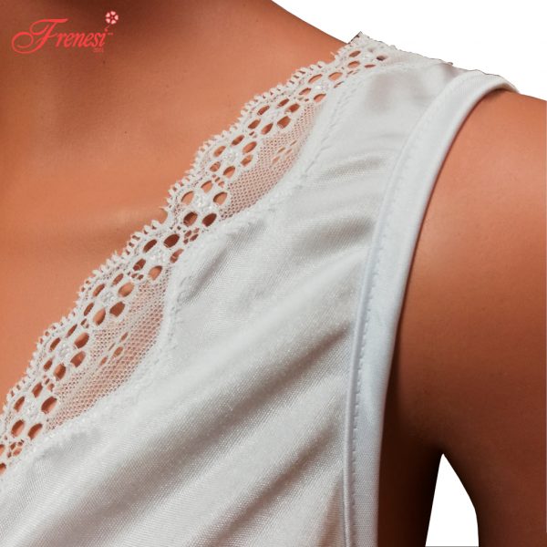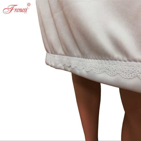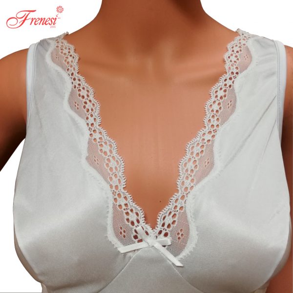 - Aplicación de bies en tirantes y bastilla angosta con adorno de encaje delgado